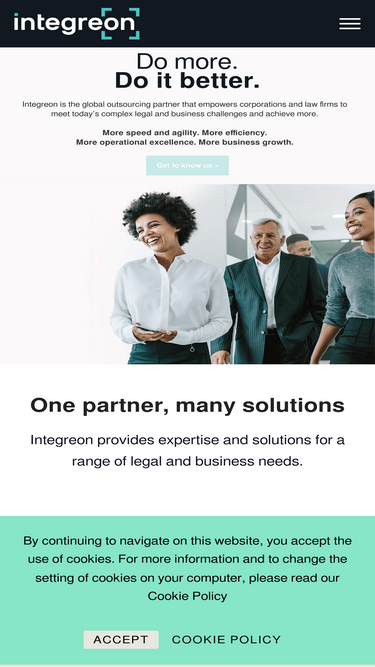 97%One partner, many solutions. Integreon provides expertise and solutions for a range of legal and business needs.