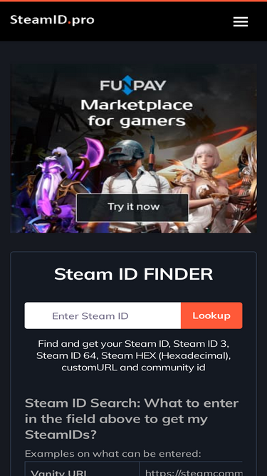 96%【Steam ID Pro】 - l'outil vous permet de trouver et d'obtenir votre identifiant Steam ⚡ rapidement et facilement / Trouver et convertir l'identifiant Steam par identifiant de communauté ⭐ steamID ⭐ steamID32 ⭐ steamID64 ⭐ URL ⭐ steamID3 ⭐ Nom❗