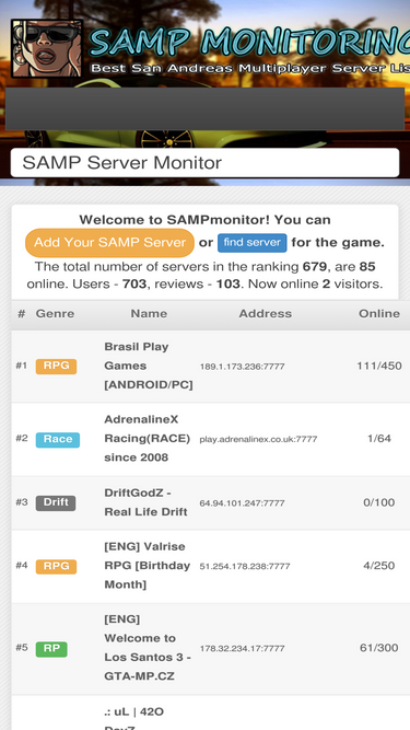 80%sampmonitoring.com: samp servers. a monitoring service for samp servers with a full set of tools for both players and server owners. play gta samp on your favorite servers!