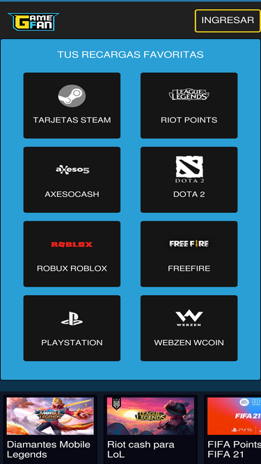 98%En Gamefan somos Distribuidores oficial de Steam wallet,Riot Points, Dota2, Axeso Cash, K-Coin y muchos mas para Latinoamerica, compra con confianza.