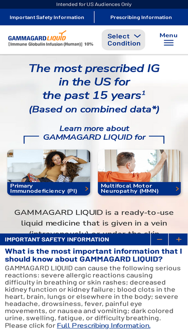 100%Learn about GAMMAGARD LIQUID for healthcare professionals. See Important Safety Information, including Boxed Warning regarding Thrombosis, Renal Dysfunction, and Acute Renal Failure.
