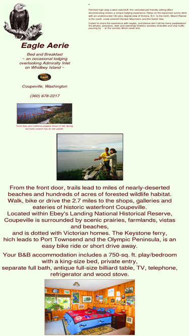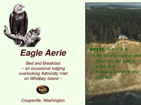 the eagle aerie offers occasional lodging overlooking admiralty inlet on central whidbey island in puget sound, washington state.