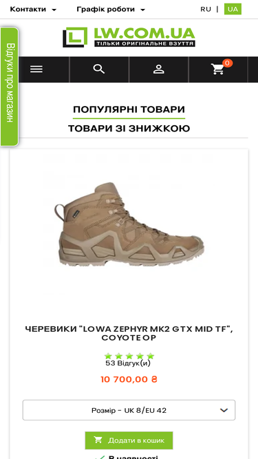 Ботинки Lowa Zephyr GTX MID TF это многофункциональная обувь для работы или активного отдыха. Пользуется популярностью среди военных, полиции и туристов.Легки и удобные ботинки, обеспечивают комфорт в движении, обладают хорошей паропроницаемостью, защищены от влаги, обеспечивают сухость Вашим ногам, защищают стопу от ударов и вывихов.Ботинки рассчитаны на использование в летний период времени. В сочетании с хорошими носками и при правильном уходе, данная обувь может использоваться круглый год в любых условиях. Мембрана GORE-TEX - защищает Ваши ноги от намокания и обеспечивает воздухопроницаемость обуви Конструкция LOWA "Monowrap" обеспечивает поддержку стопы , защищает от ударов, увеличивает надежность обуви Подошва Lowa "Cross" обеспечивает хорошее сцепление и оптимальный перекат стопы. Подошва из полиуретана для амортизации, поддержки и стабилизации стопы Стелька Lowa Climate Control - улучшает отвод влаги внутри ботинка, создает дополнительный комфорт при движении Аббревиатура TF (Task Force) в названии обозначает специализированость этих моделей под задачи военных и полиции. Обувь из коллекции Lowa Task Force была разработана для самых тяжелых условий и как правило, более прочна и надежна, чем одноименная обувь из обычной коллекции для активного отдыха и туризма. Полезные статьи: Как выбрать размер обуви - возникли трудности с выбором размера? Мы подготовили статью, где рассказали как правильно выбрать размерУход за обувью Lowa - используя средства по уходу, Вы продлеваете срок службы своей обуви, повышаете ее защитные и влагоотталкивающие свойства