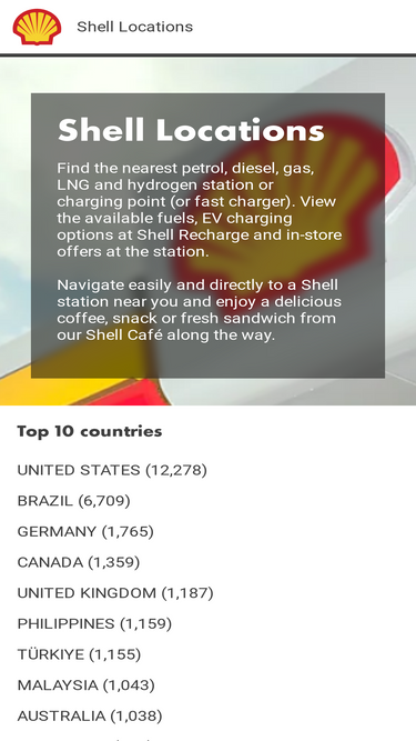 82%Find the nearest petrol, diesel, gas, LNG and hydrogen station or charging point (or fast charger). View the available fuels, EV charging options at Shell Recharge and in-store offers at the station. Navigate easily and directly to a Shell station near you and enjoy a delicious coffee, snack or fresh sandwich from our Shell Café along the way.