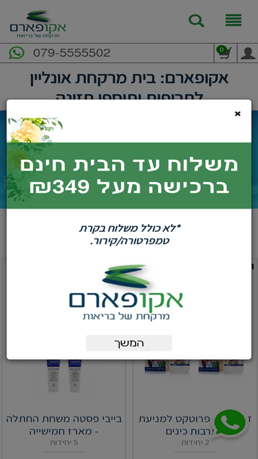89%אקופארם הינו בית מרקחת וחנות פארם, באתרנו תוכלו לרכוש מוצרי פארם, קוסמטיקה, טיפוח, איפור, תוספי תזונה, מוצרי ספיגה, מוצרים לתינוקת. אנו דוגלים במחירים הוגנים ושירות מעולה, משלוחים מהירים לכל הארץ