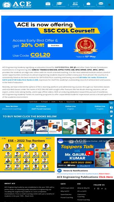78%ACE Engineering Academy provides the best institute for Gate, IES(ESE), PSU in Hyderabad,Delhi,Bengaluru, Bhubaneswar, Bhopal, Lucknow, Patna, Chennai, Vijayawada, Visakhapatnam, Tirupati, Kolkata
