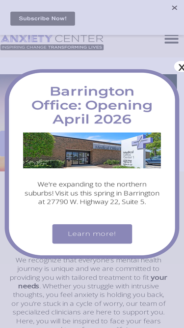 82%The OCD & Anxiety Center helps with health anxiety, trichotillomania, tics, sleep disorders, PTSD, and more. Contact us at (630) 522-3124 to schedule in-home & online counseling services.