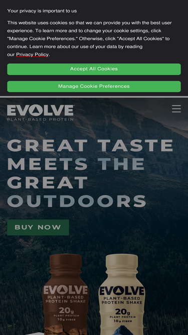 90%Great taste meet the great outdoors. EVOLVE® plant-based protein is made with only the highest-quality, non-GMO pea protein.
