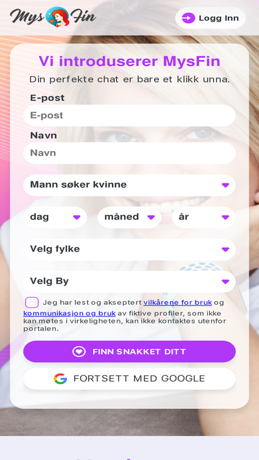 100%Velkommen til Mys Fin - datingsiden! Her kan du chatte og møte interessante mennesker fra hele verden. Uansett hva du leter etter - chat, flørt, kjærlighet - du har kommet til rett sted. Lykke til!