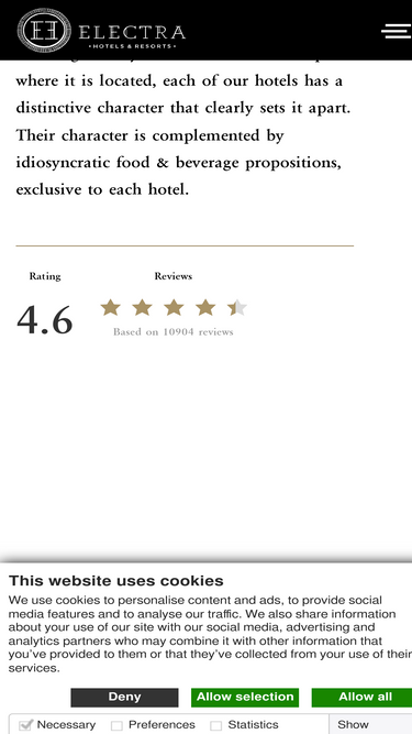 100%C'est ici que vous pouvez lire toutes les conditions d'utilisation d'Electra Hotels concernant la visite du site web du groupe.
