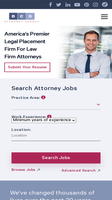 100%BCG Attorney Search - voted as the premier legal recruiters in the country. We place attorneys across all types of law firms and practice areas. Call us now at 800-298-6440 to discuss your career.