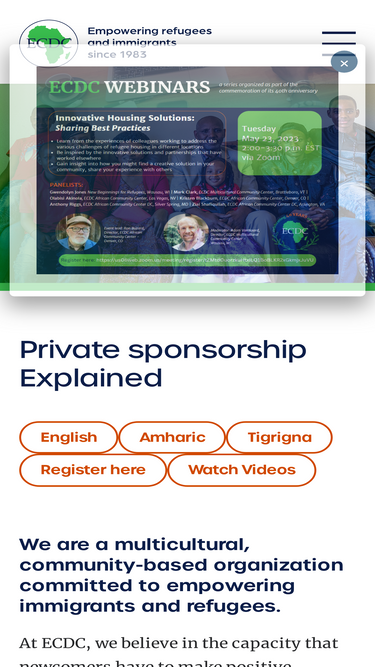 92%ECDC, in collaboration with the African Communities Together (ACT), is proud to present an information session on Welcome Corps' Private Sponsorship program announced by the Department of State this year.