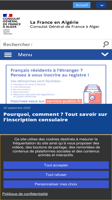 89%Si vous êtes inscrits sur le registre des Français établis hors de France et vous quittez définitivement l'Algérie n'oubliez pas de signaler votre départ.