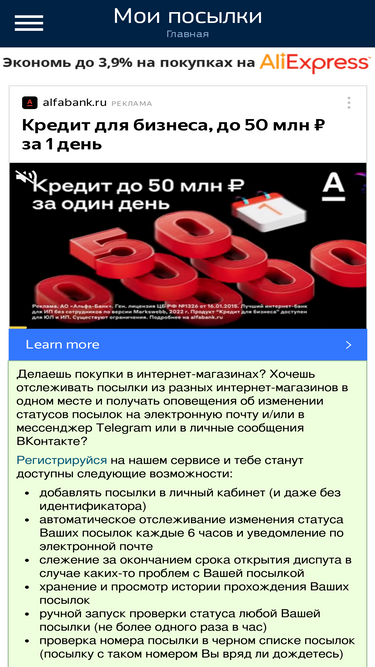 91%Крупнейший сервис отслеживания почтовых отправлений. ГдеПосылка отслеживает более 100 служб доставки разных стран. Отследить посылку из Китая, с AliExpress и будь то Почта России или США — не проблема.