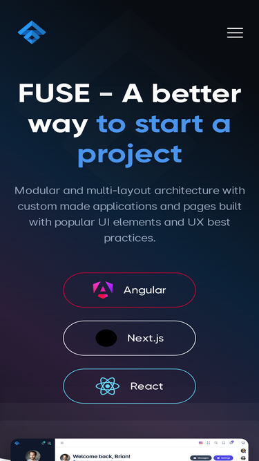 70%FUSE React is a complete admin template that follows Google’s Material Design guidelines. Fuse React uses Material UI as UI library and TanStack Query for the state management and written with react hooks. It has built-in page templates, routing and auth features. Discover why thousands of developers choose Fuse Admin Theme Family.