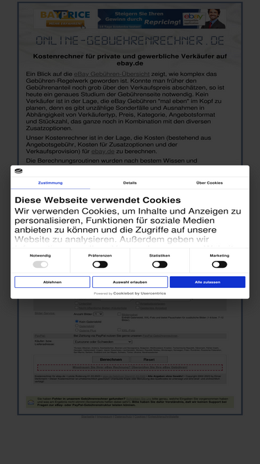 kostenrechner für private und gewerbliche verkäufer auf ebay.de (bestehend aus angebotsgebühr, gebühren für zusatzoptionen und verkaufsprovision)