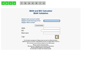 100%international bank account number - convert your bank account number to the new iban and bic combination + free webservices. bereken je iban en bic code van je belgische bankrekeningnummer. vanaf 1 januari 2008 is door de invoering van sepa betalingen de iban en bic code verplicht voor alle buitenlandse betalingen en later ook voor alle binnenlandse betaling. batch conversion of you bank account numbers in microsoft excel. gratis webservices voor het berekenen en controleren van iban codes van heel de eurozone. mathieu de smet
