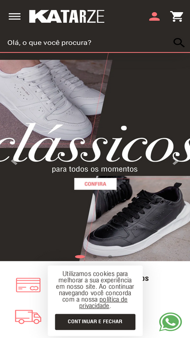 94%Na Katarze você encontra as melhores opções em calçados femininos, masculinos e infantis, acessórios e muito mais. Entrega 100% garantida. Aproveite!