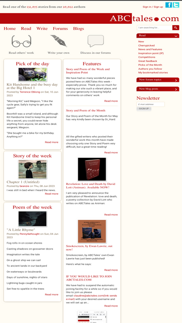 77%abctales is a free online creative writing forum. read and publish poetry and short fiction and get feedback and critiques from our community of editors.