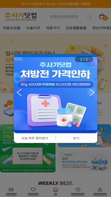 88%안녕하세요. 당신의 건강친구 의료용품(의료소모품, 의약품) 전문몰 주사기닷컴입니다. 주사기, 거즈, 수액셋트, 원내의약품 등 최저가 보상제를 실시하고 있습니다.