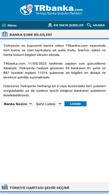 türkiye'de faaliyet gösteren 53 bankanın 11149 şubesine ait telefon ve faks numaraları, şube kodları, adres ve haritalı ulaşım bilgileri elinizin altında.
