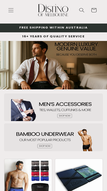 93%Distino offers discerning men high-quality accessories — bamboo underwear, neckties, wallets, and socks — crafted for style, comfort, and everyday confidence, all at exceptional value.