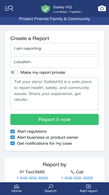 69%Wir sammeln und teilen Berichte mit Verbrauchern sowie Gesundheits- und Stadtagenturen. Schützen Sie Freunde, Familie und helfen Sie Ihrer Gemeinschaft. Wenn Sie sehen,