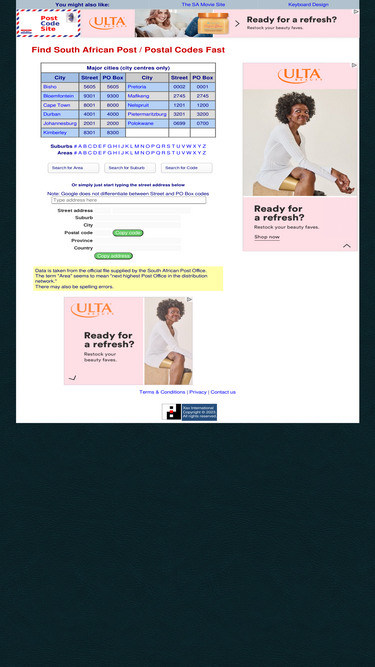76%the post code site - fast south african street and po box postal code lookups with map.