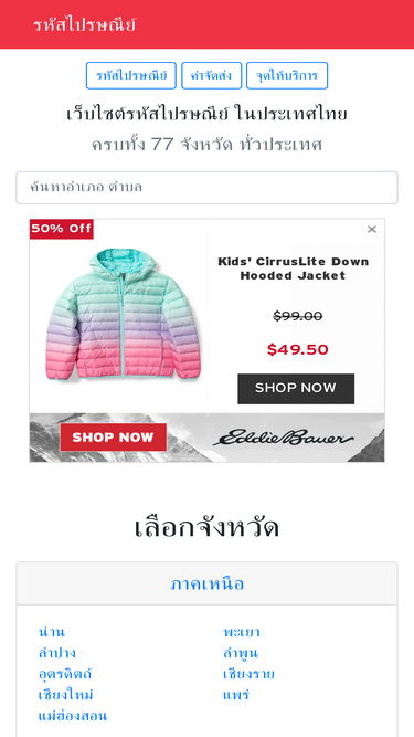 72%รหัสไปรษณีย์ ประเทศไทย ครบ 77 จังหวัด ครบทุกอำเภอ