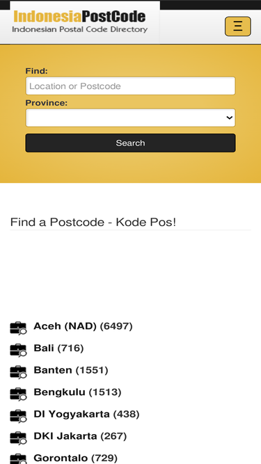 76%comprehensive listing of indonesia postcode with search and look-up functions