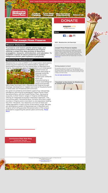 79%meadowview is a non-profit 501(c)(3) organization dedicated to preserving and restoring rare wetland plants, habitats and associated ecosystems on the coastal plain of maryland and virginia. our particular area of specialization is an endangered habitat known as pitcher plant bogs or seepage wetlands.