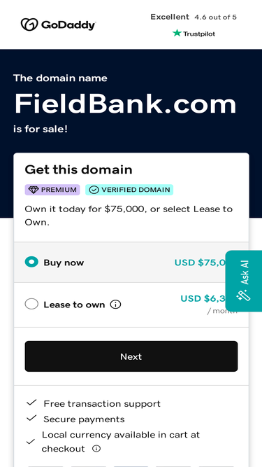 82%the domain name fieldbank.com is for sale. make an offer or buy it now at a set price. undeveloped keeps you safe.