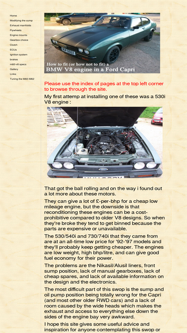 98%excellent advice on how to fit a bmw v8 engine into a ford capri. m60 conversion. v8 ford capri.