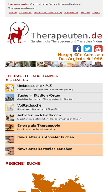 77%die idee, die wir mit dem portal therapeuten.de verfolgen ist es, das internet für einen therapeutischen branchen- und suchdienst mit ganzheitlicher orientierung einzusetzen - quasi die gelben seiten für ganzheitliche therapie und therapeuten.