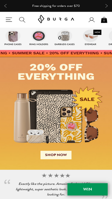92%Stand out from the crowd with unique daily essentials from BURGA. Shop now for stylish phone cases, statement eyewear, elegant drinkware & more.