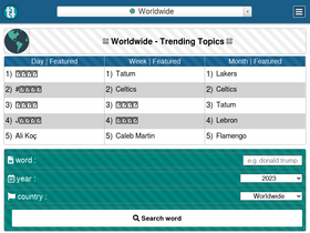 According to Similarweb data of monthly visits, getdaytrends.com’s top competitor in March 2026 is twitter-trending.com. getdaytrends.com 2nd most similar site is trends24.in, and closing off the top 3 is trend.wisesight.com.