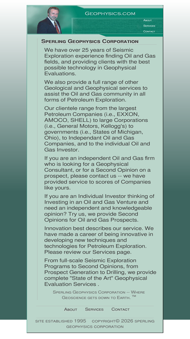84%sperling geophysics corporation provides a full range of geological and geophysical services to assist the oil and gas community in all forms of petroleum exploration.