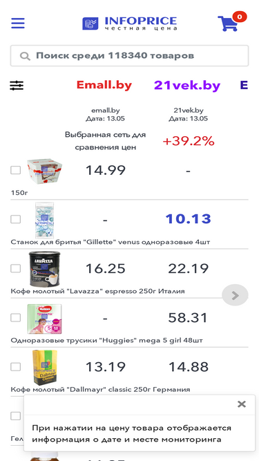79%infoprice — сравнение цен онлайн на товары в магазинах минска. акции, скидки, листовки, купоны, промокоды беларусь. скачать мобильное приложение в google play и appstore.