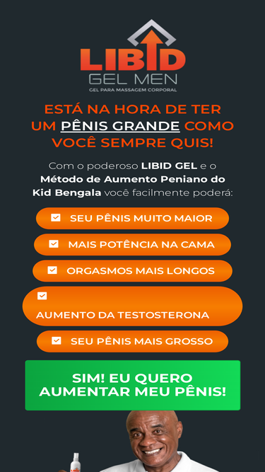 78%ESTÁ NA HORA DE TER UM PÊNIS GRANDE COMO VOCÊ SEMPRE QUIS! Com o poderoso LIBID GEL e o Método de Aumento Peniano do Kid Bengala você facilmente poderá: SEU PÊNIS MUITO MAIOR MAIS POTÊNCIA NA CAMA ORGASMOS MAIS LONGOS AUMENTO DA TESTOSTERONA SEU PÊNIS MAIS GROSSO SIM! Eu quero aumentar meu pênis! Aumento Garantido