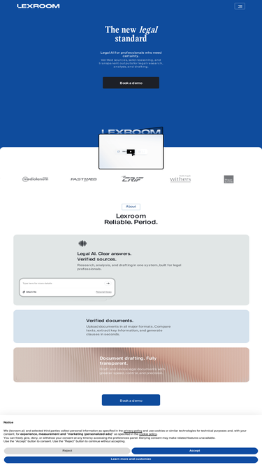 90%Lexroom is the AI partner designed to amplify your professional judgment. It combines the depth of legal research with the power of data analysis to offer you accuracy, speed, and reliability.