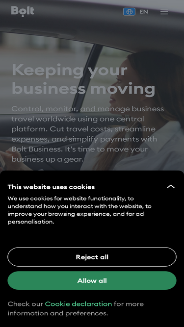 100%optimise your company's business travel with bolt business. easy expense reporting. monthly invoices. affordable airport transfers. courtesy rides.