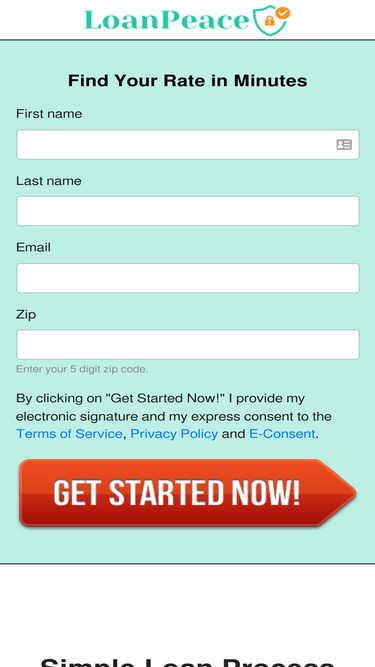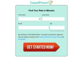 99%Looking for a personal loan, business loan, debt consolidation loan, or other loan? LoanPeace.com will get you in front of the right lender in our network.