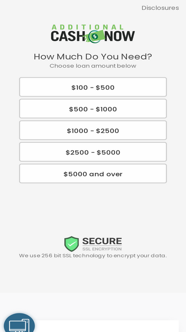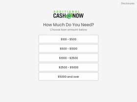 95%with additionalcashnow, you can receive funding up to $35,000. we have extensive partnerships with large authorized lenders. this allows us to cover almost all 50 states. if approved, the loan may be received in as soon as the next business day from the privacy of your own home.