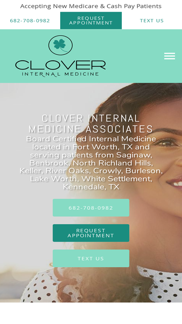 84%now offering virtual visits - book online today! trusted board certified internal medicine serving fort worth, tx. contact us at 682-708-0982 or visit us at 800 8th avenue, suite 506, fort worth, tx 76104: clover internal medicine associates