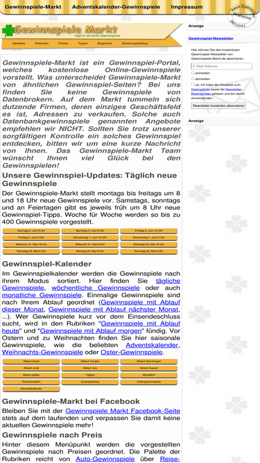 gewinnspiele-markt.de präsentiert ihnen täglich aktuelle und neue online-gewinnspiele bei denen sie kostenlos teilnehmen und tolle preise gewinnen können.