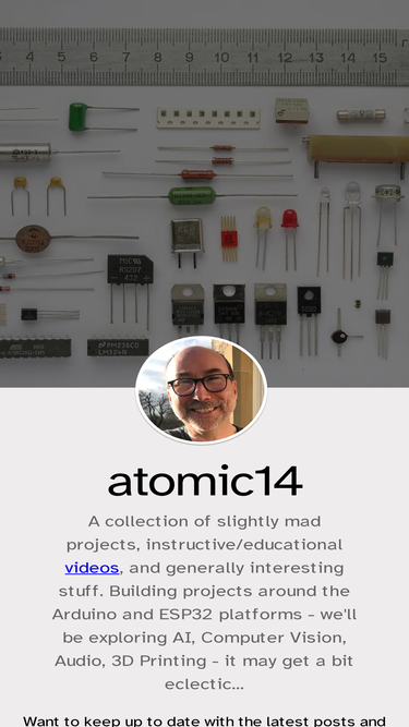 89%a collection of slightly mad projects, instructive/educational videos, and generally interesting stuff. building projects around the arduino and esp32 platforms - we'll be exploring ai, computer vision, audio, 3d printing - it may get a bit eclectic...