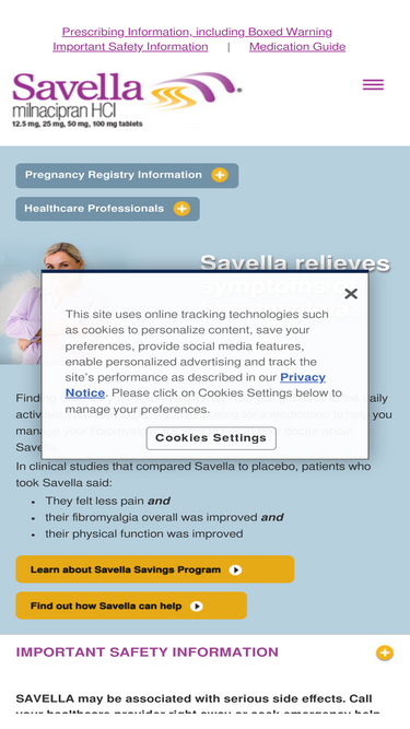 79%learn more about savella® and how it may help in the treatment of your fibromyalgia symptoms. see prescribing information & boxed warning.