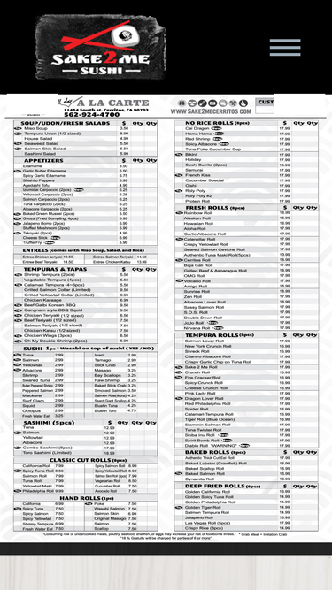 Sake2Me Cerritos passionately believes in bringing top quality sushi and rolls to your dining experience. Fresh fish and delicious food at an affordable price!