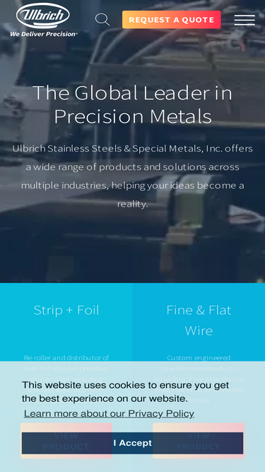 100%Re-roller and distributor of over 100 alloys of precision strip and foil including stainless steel, titanium, nickel alloy and cobalt alloy.