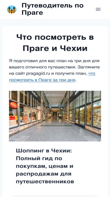 74%Я подготовил для вас план на три дня для вашего отличного путешествия. Загляните на сайт pragagid.ru и получите план, что посмотреть в Праге за три дня.